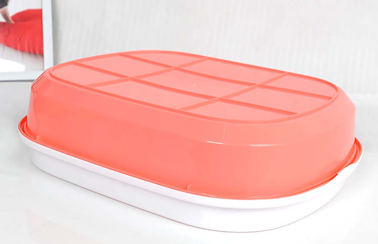- Khay được thiết kế có vành xung quanh chậu ,để khi mèo bới cát không bị bắn ra ngoài ,nắp có thể tháo ra và vệ sinh hàng ngày