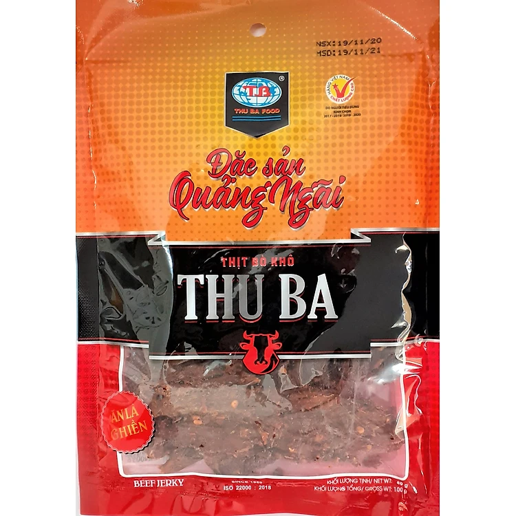 Bò Khô MIẾNG mềm Thu Ba hàng Việt nam chất lượng cao 100% loại 100 gram, đặc sản Quảng Ngãi, miền Trung