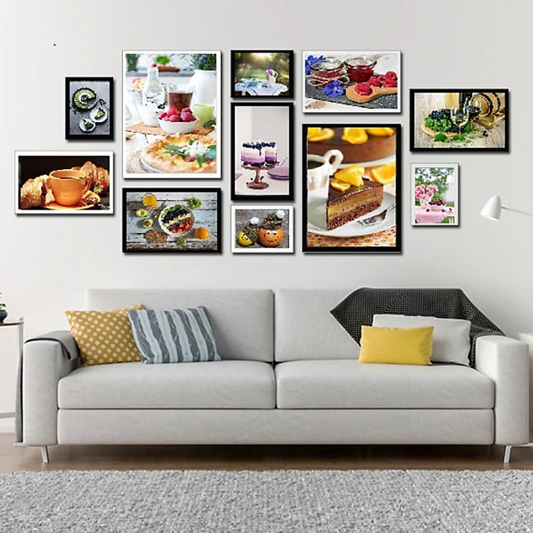 Bộ khung ảnh có thể trang trí phòng khách,phòng ngủ hoặc phòng ăn với hình ảnh thiên nhiên, cảnh vật hay chính những bức ảnh của những thành viên trong gia đình.