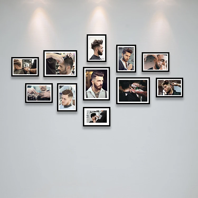 Bộ Khung Treo Tường Trang Trí Salon Cắt Tóc Nam Cực Đẹp Tặng Kèm bộ ảnh như hình mẫu, đinh treo tranh và sơ đồ treo - PGC237