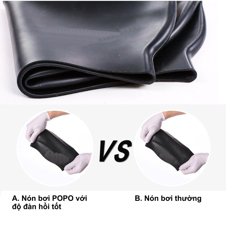 Chất liệu Silicone an toàn không chất độc hại. Độ co dãn hoàn hảo. Ôm kín đầu khi bơi, ngăn nước vào tóc.