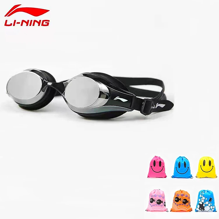 Bộ Kính bơi người lớn LI-NING tráng gương chống tia UV, chống sương mù và Túi đựng kính bơi màu ngẫu nhiên - Hàng chính hãng