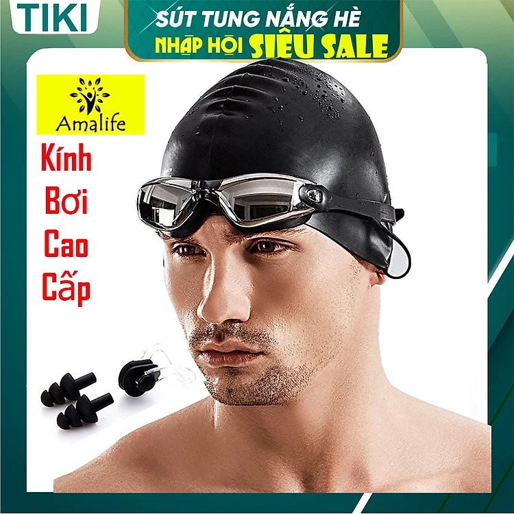 Bộ Kính Bơi Tráng Bạc Chống Tia UV Có Bịt Tai Gắn Liền - Chọn Màu – Kính Bơi Cao Cấp Chống Nước Tặng Kèm Bịt Mũi, Kèm Bịt Tai Rời Chính Hãng Amalife
