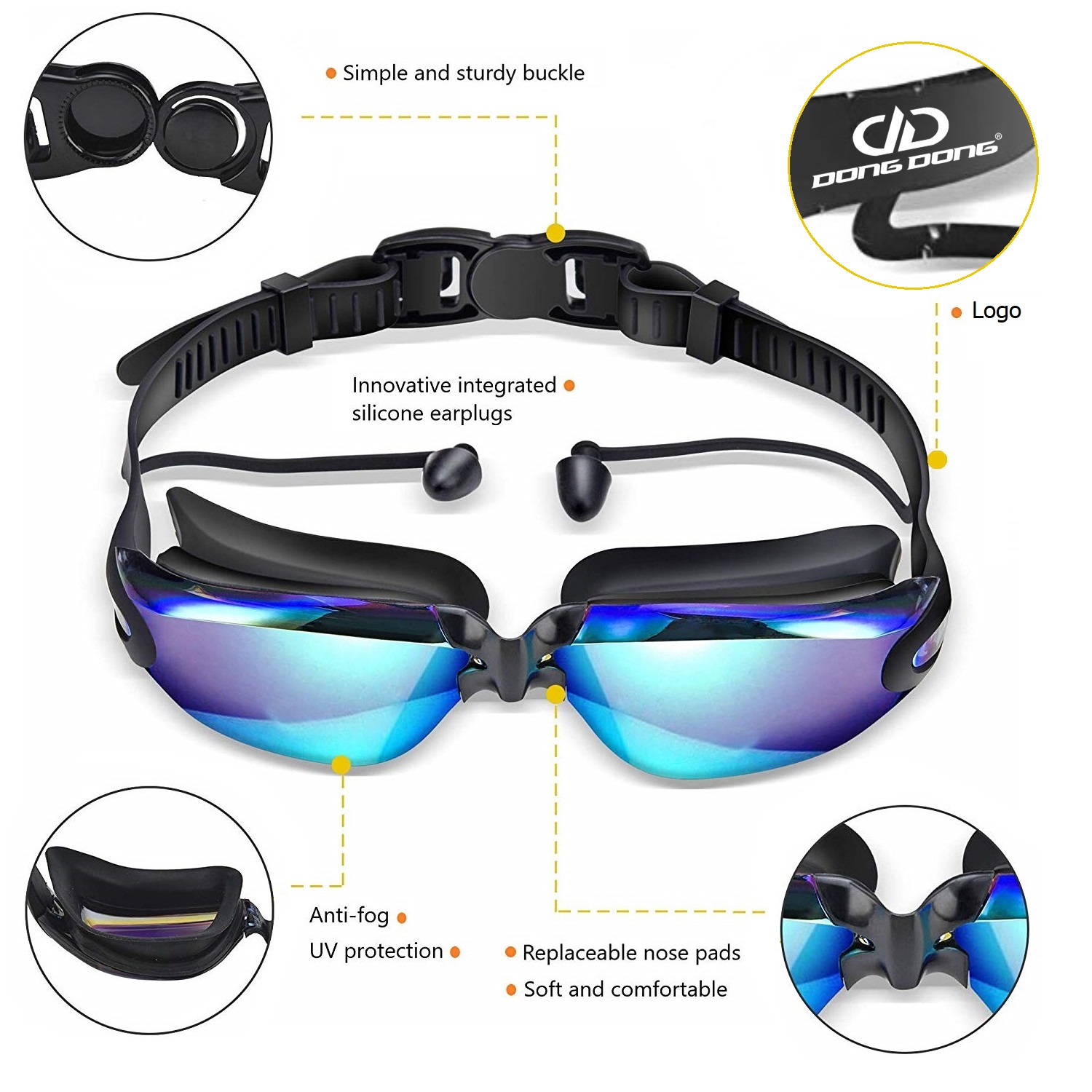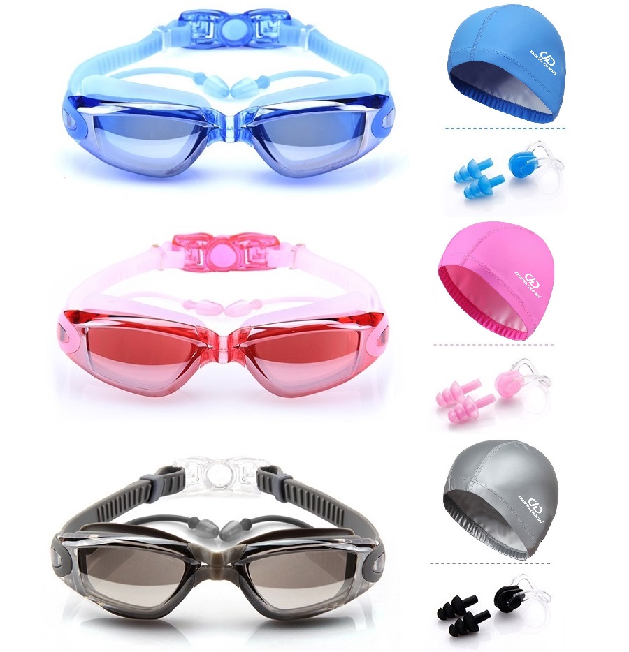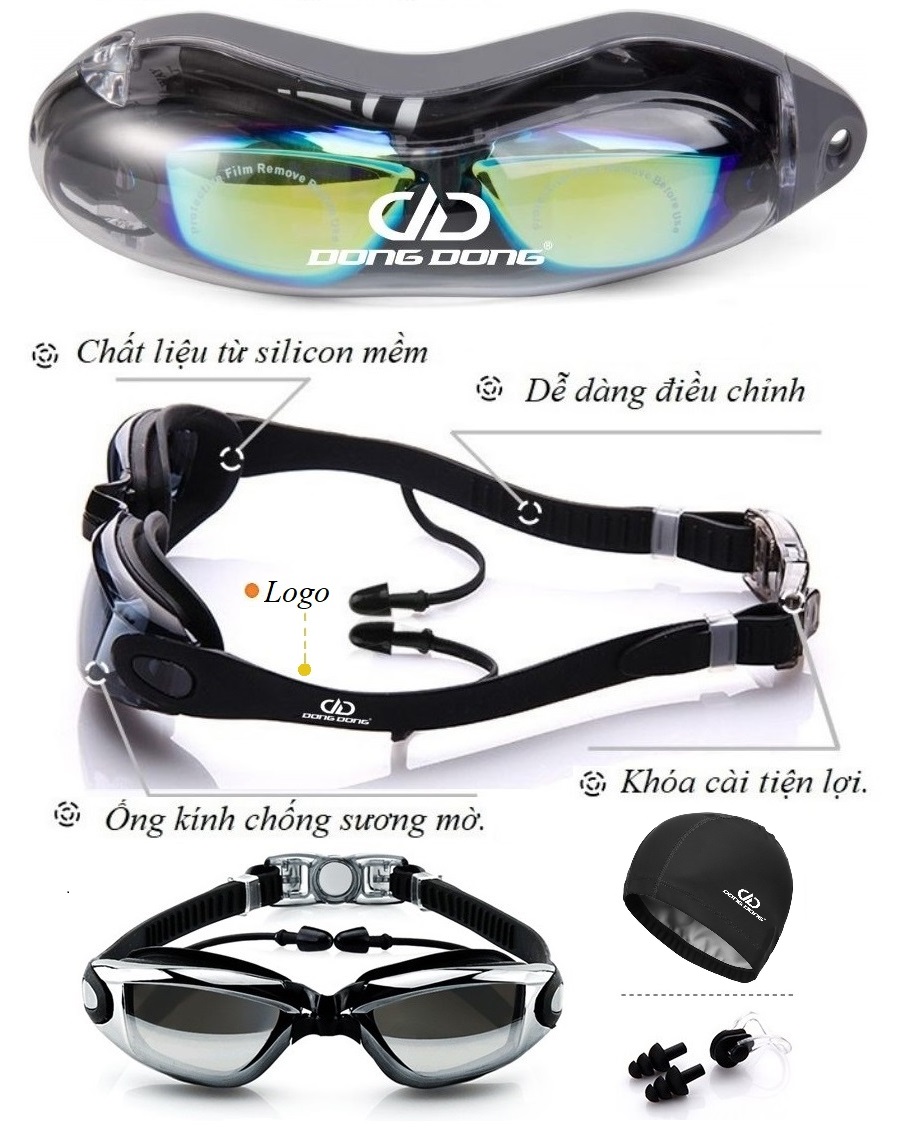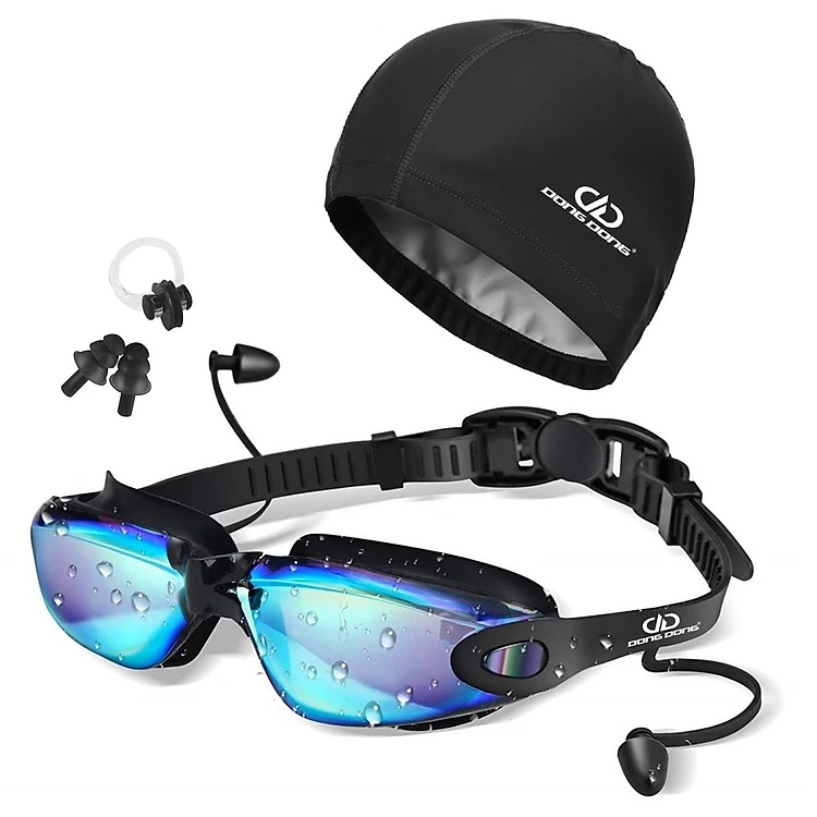 Bộ kính bơi mắt tráng GƯƠNG cao cấp DD66 - gồm Mũ bơi, Bịt tai kẹp mũi chính hãng DONGDONG