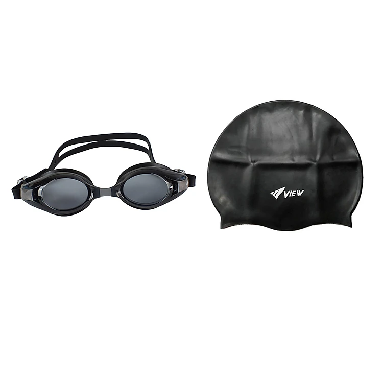 Bộ Kính Bơi VIEW V500S BK (Đen) Chống Sương Mù Chống tia UV Và Nón Bơi View V31(Đen) - Hàng chính hãng 100% sản xuất tại Nhật Bản