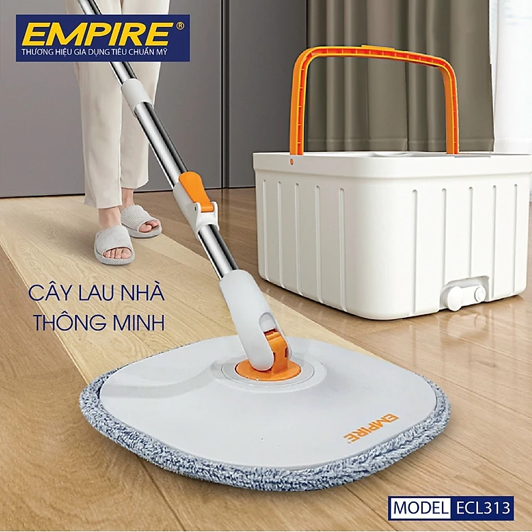 Bộ lau nhà hai ngăn tiết kiệm nước tự vắt thông minh xoay 360 độ bông lau hình vuông Empire- Hàng chính hãng