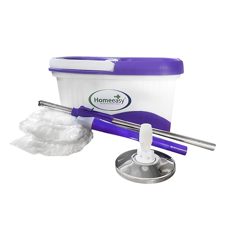Bộ Lau Nhà Lồng Inox 360 Độ Homeeasy Dragon Màu Vàng Viền Tím - Kèm 2 Bông Lau