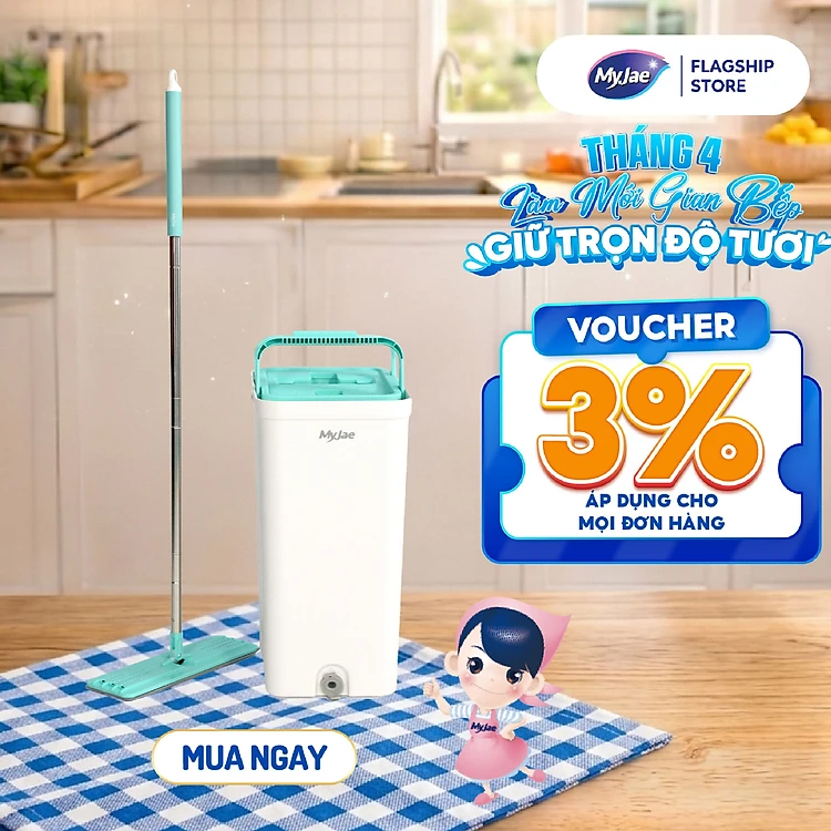 Bộ lau nhà MyJae thông minh Maxi 380 sợi Fiber lau sạch nhanh khô 125cm
