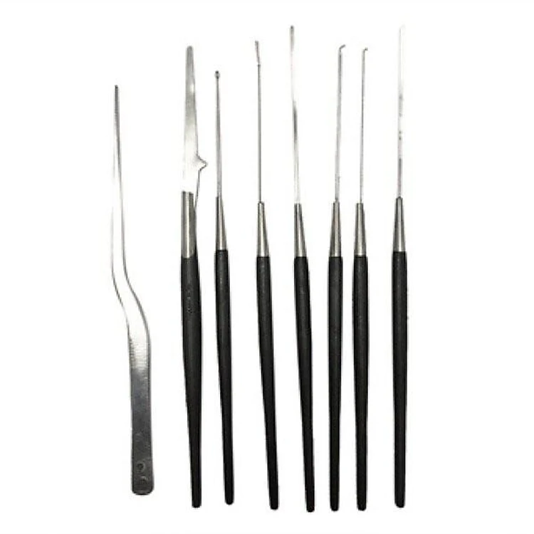- Bộ lấy ráy tai Lâm Uyên (8 món) gồm đầy đủ các dụng cụ lấy ráy tai, thiết kế nhỏ gọn, kích thước vừa phải, được chế tạo từ nguyên liệu INOX, không gây nhiểm khuẩn, đảm bảo an toàn khi sử dụng.