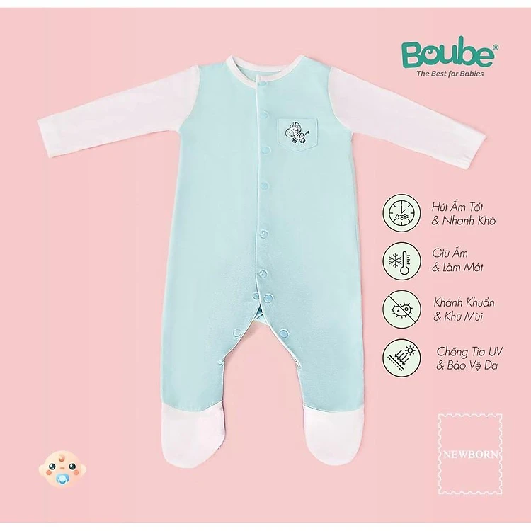 Bộ liền thân, body liền tất phối màu cho em bé sơ sinh Boube, vải sợi tre Bamboo thông minh, thoải mái - Size newborn