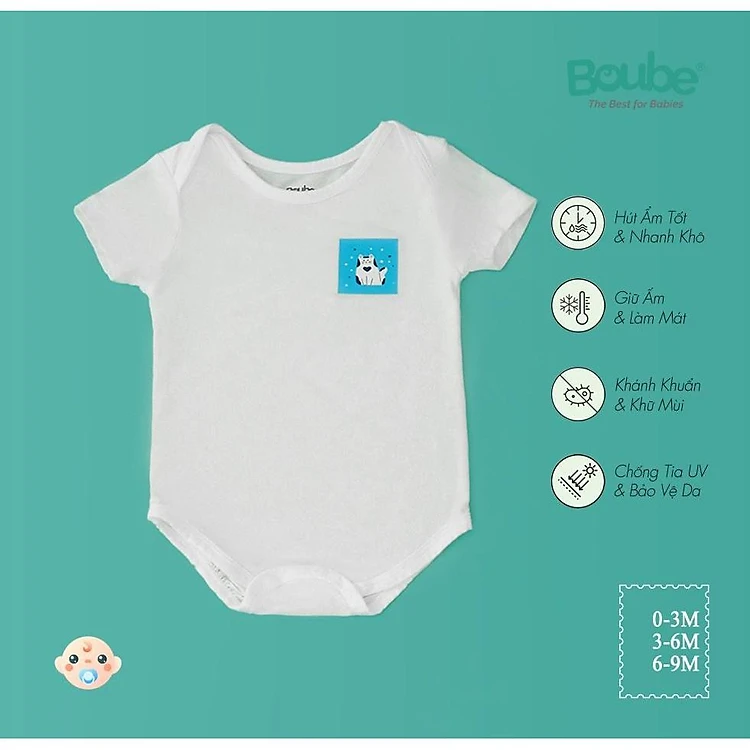 Bộ liền thân, bodychip ngắn tay cho em bé nhiều màu Boube, vải sợi tre cao cấp Bamboo thông minh, thoải mái - Size 0-9M