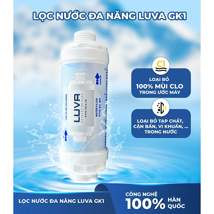 Bộ lọc nước đa năng LUVA GK1, lọc cho vòi sen tắm, máy giặt, máy rửa bát, bồn rửa bát, bồn cầu thông minh