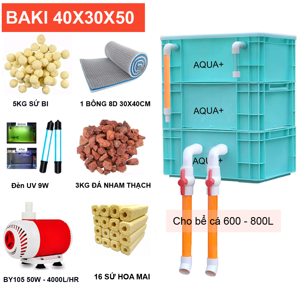 1. Thùng lọc Baki 3 TẦNG (30x40x50cm): Kích thước chuẩn, tối ưu diện tích lọc, thiết kế thông minh cho dòng nước lưu thông hiệu quả.