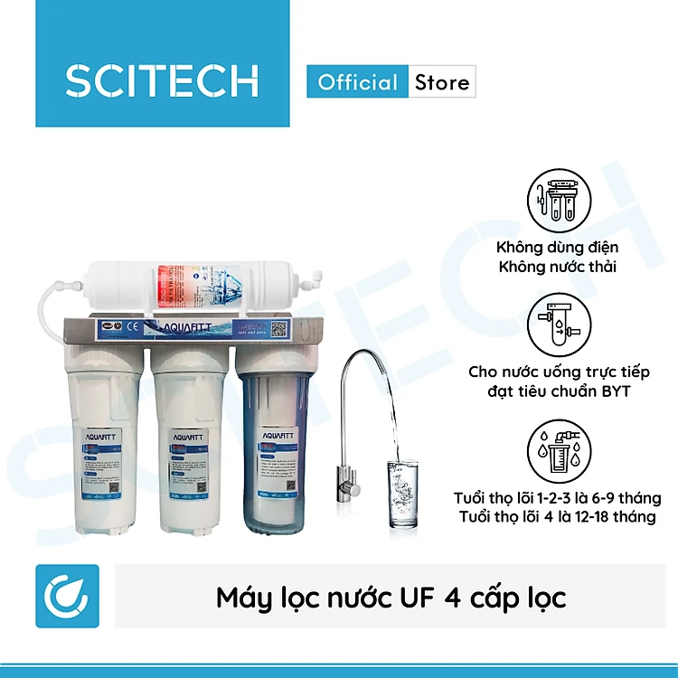 Bộ lọc nước uống công nghệ UF 4 cấp lọc giúp lọc sạch cặn bẩn, rỉ sét, rong rêu, chất hữu cơ và các tạp chất khác lẫn trong nước. Bộ lọc thích hợp dùng lọc nước uống trực tiếp hay để nấu ăn, rửa rau củ