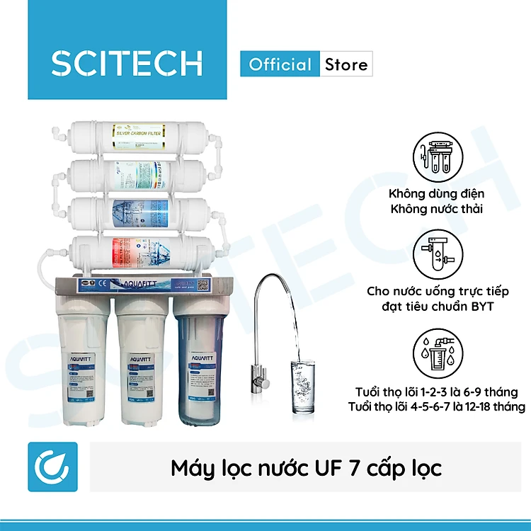 Bộ lọc nước uống công nghệ UF 7 cấp lọc giúp lọc sạch cặn bẩn, rỉ sét, rong rêu, chất hữu cơ và các tạp chất khác lẫn trong nước. Bộ lọc thích hợp dùng lọc nước uống trực tiếp hay để nấu ăn, rửa rau củ