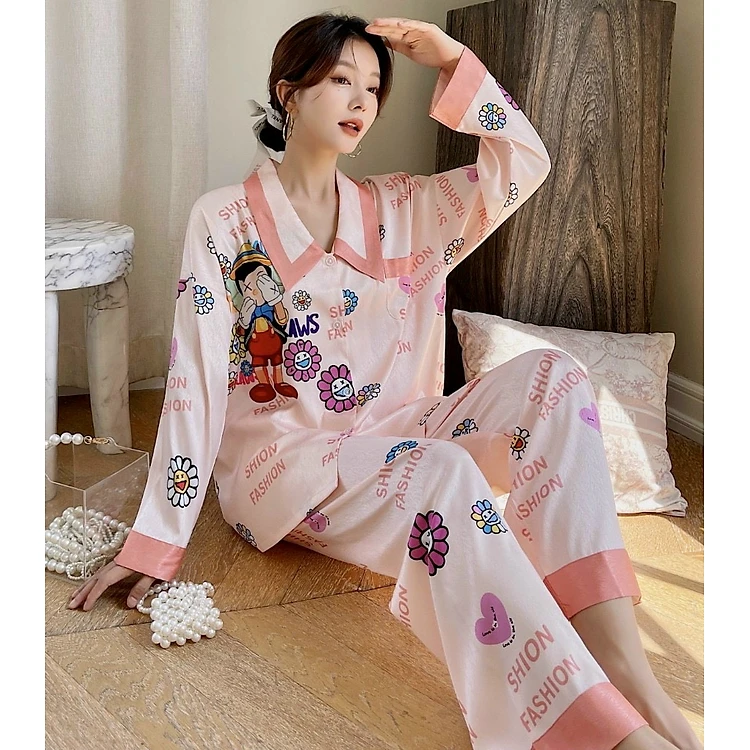 Bộ lụa tay dài quần dài, bộ lụa mặc nhà chất vải hàng cao cấp, lụa xước mã B391