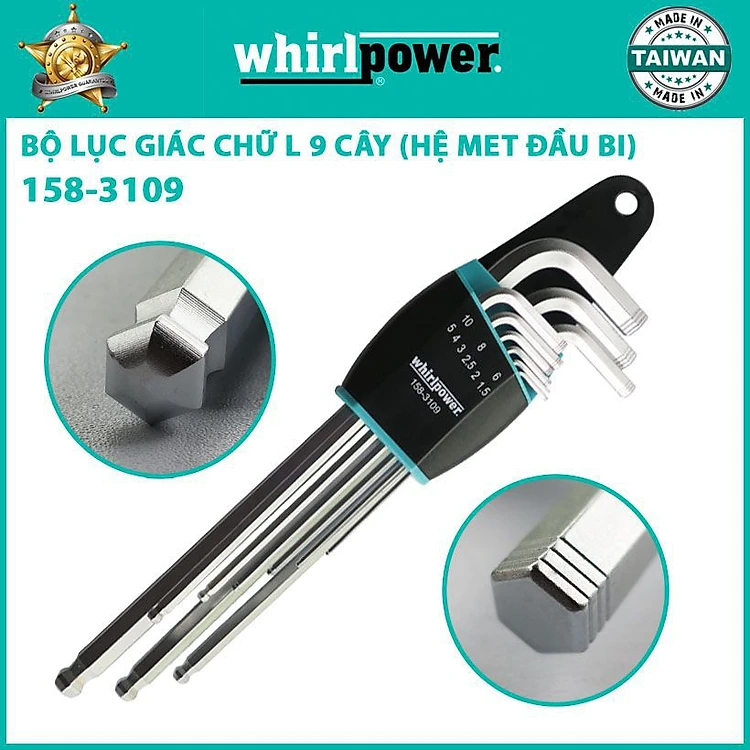 BỘ LỤC GIÁC CHỮ L 9 CÂY (HỆ MET ĐẦU BI) WHIRLPOWER