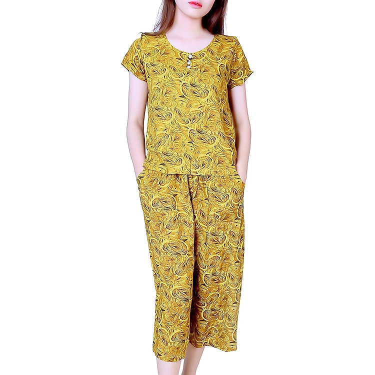 - Sản phẩm được thiết kế áo cộc tay,quần ống sớ,phom dáng may suông rộng thoải mái cho các bà và các mẹ