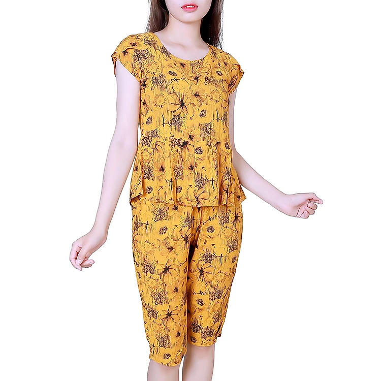 Bộ mặc nhà lanh (tole) Vicci BN057.31 họa tiết hoa nền vàng