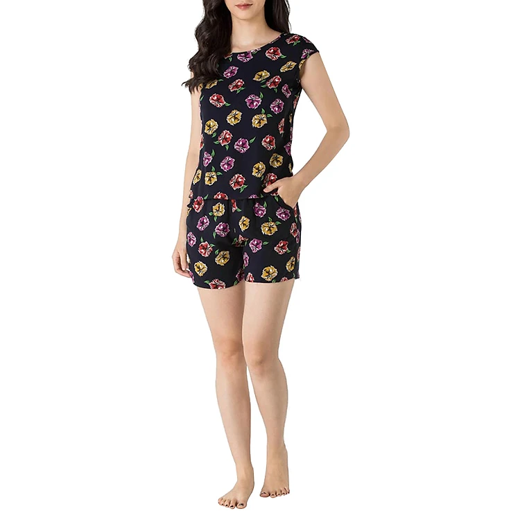 - Áo cổ tròn, tay ngắn thoải mái, mang tới cho bạn gái sự dễ chịu khi mặc ở nhà.