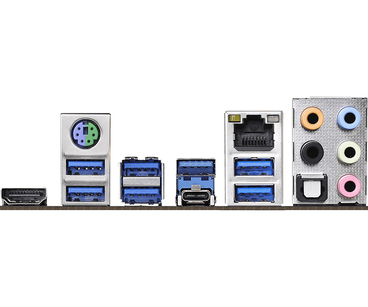 | Cổng giao tiếp ngoài | 1 x PS/2, 1 x HDMI, 1 x Optical SPDIF Out Port, 1 x USB 3.1 Gen2 Type-A Port (10 Gb/s), 1 x USB 3.1 Gen2 Type-C Port (10 Gb/s), 6 x USB 3.1 Gen1 Ports |