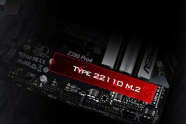- 1 x Ultra M.2 Socket (M2_2), supports M Key type 2230/2242/2260/2280/22110 M.2 SATA3 6.0 Gb/s module and M.2 PCI Express module up to Gen3 x4 (32 Gb/s)