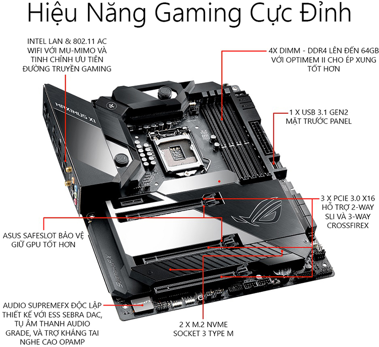 - 2 x PCIe 3.0/2.0 x16 (x16 hoặc 2 x8)