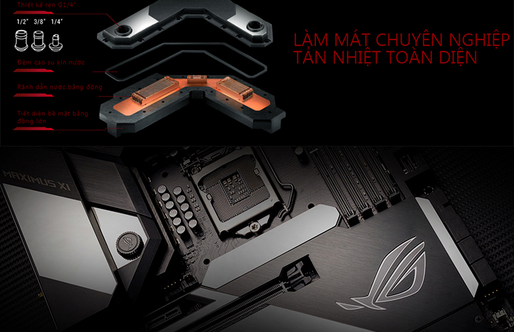 Bo Mạch Chủ Mainboard Gaming Asus ROG Maximus XI Formula Z390 ATX được trang bị bộ phát xung tích hợp chuyên dụng cung cấp các xung tham chiếu động cho các lõi CPU và các miền phụ, giúp bạn dễ dàng kiểm soát từng MHz chưa dùng đến của hệ thống. CrossChill EK III cho phép bạn làm mát bằng không khí hoặc nước. Các rãnh làm mát được thiết kế mới được làm bằng đồng rộng hơn, giảm nhiệt độ MOSFET thấp hơn 37,2°C ở nước và các thiết bị lắp ren G1/4” tiêu chuẩn giúp cho CrossChill EK III dễ dàng vừa với các linh kiện hiện có - vì vậy bạn có thể tận hưởng tính năng làm mát hiệu quả, yên tĩnh mà không phải tốn công sức.
