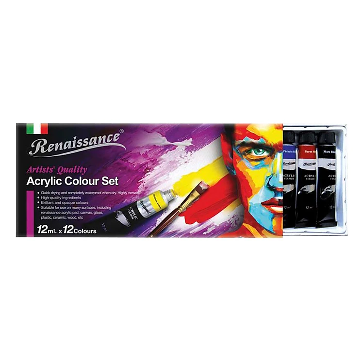 - Bộ Màu Vẽ Renaissance Acrylic Masterart Series (12 màu x12 ml) là sản phẩm đến từ thương hiệu mỹ thuật cao cấp hàng đầu Thái Lan Renaissance