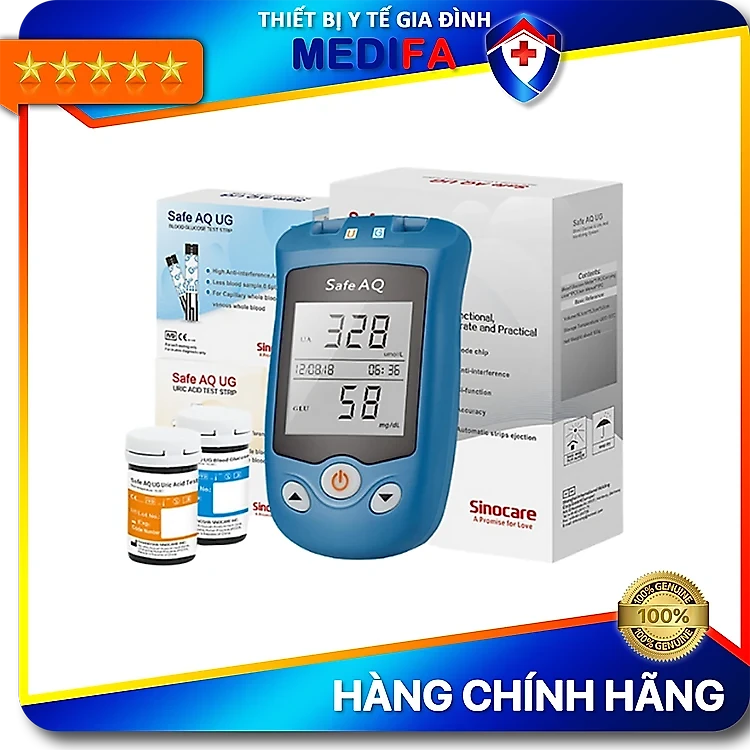 BỘ MÁY ĐO ĐƯỜNG HUYẾT VÀ AXIT URIC ( BỆNH GÚT ) 2 TRONG 1 KÈM 100 QUE KIM