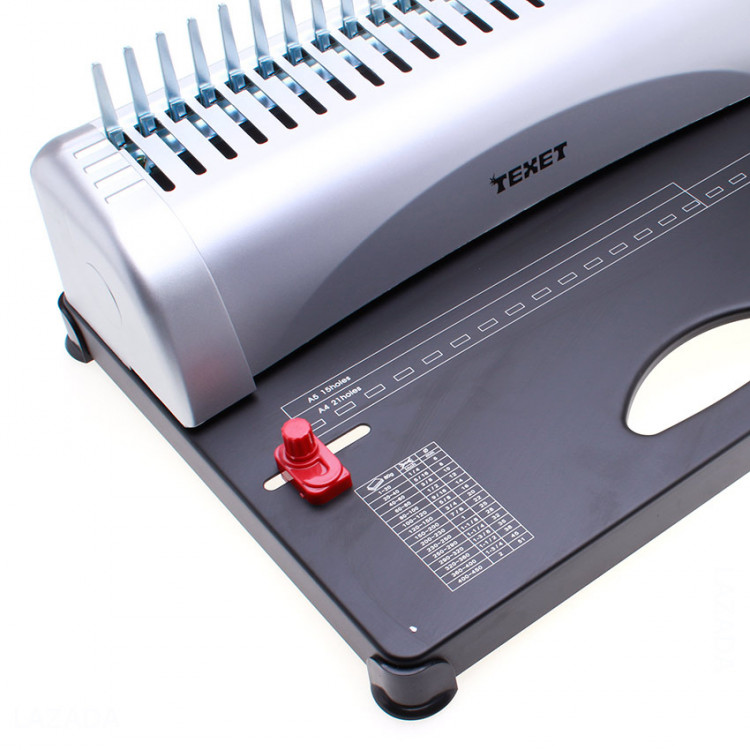 Ngoài ra, máy đóng gáy lò xo là vật dụng không thể thiếu trong các dịch vụ photocopy, hoặc in ấn. Máy đóng gáy lò xo cao cấp TEXET CB-12-450N thuộc dòng máy đóng sách gáy nhựa xoắn với lưỡi dao sắc, đục lỗ hình chữ nhật cho khổ giấy A4, bỏ lỗ theo yêu cầu và chỉnh lề, giúp các thao tác đóng sách thêm nhanh và dễ dàng hơn. Máy với thiết kế tiện dụng, sẽ giúp bạn đơn giản hóa việc đóng sách và bất kỳ ai cũng có thể thực hiện được.