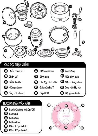 2. Sơ đồ các bộ phận máy hút sữa Unimom Minuet
