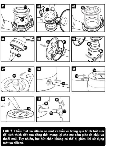 - Bộ phụ kiện bao gồm: 02 Phiễu chụp vú + 02 màng mát xa silicon+ 2 Bình đựng sữa (gồm bình đựng sữa, núm ty, nắp ngăn sữa, cổ bình, nắp đậy) + 2 Chân đế bình đựng sữa + 1 động cơ chính + 02 màng silicon K-pop +02 nắp chụp trên + 02 van màu trắng nhỏ + 02 ống dây khí dài + 01 ống khí ngắn + 01 đầu nối chữ T + 01 dây cáp USB
