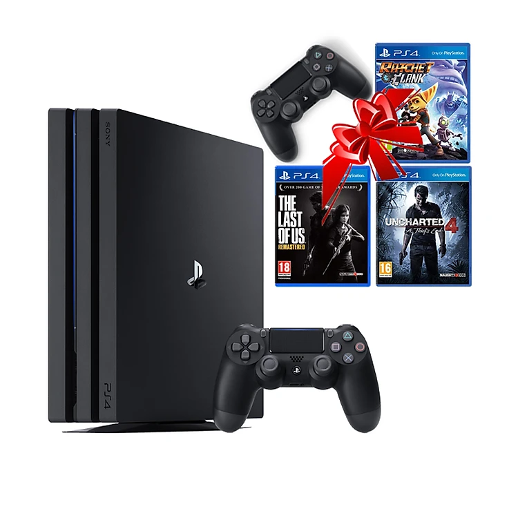 Bộ máy PS4 Pro 1TB CUH-7218B kèm 2 tay bấm + 3 đĩa game Uncharted 4, Ratchet & Clank, The Last Of Us - Playstation Hàng chính hãng