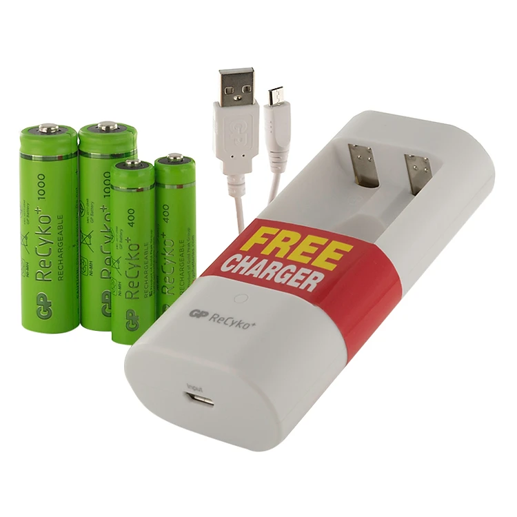 - Bộ Máy Sạc Gp Batteries U211 Kèm 2 Viên Pin Sạc Gp Batteries Recyko+ Aa (1000Mah) Và 2 Viên Pin Sạc Gp Batteries Aaa (400Mah) đã được sạc, sẵn sàng để dùng ngay lần đầu