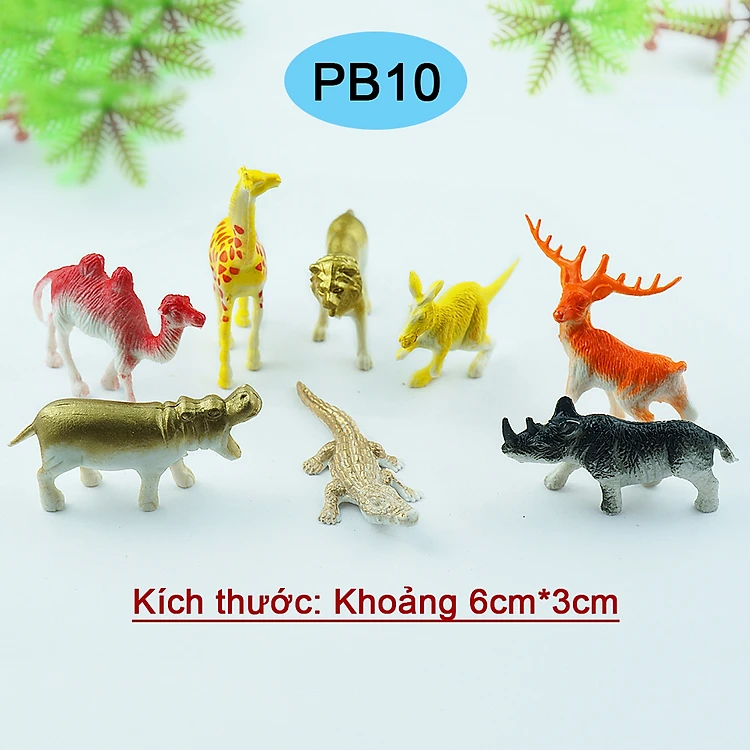 Bộ Mô Hình Nhựa Đồ Chơi 8 con Hươu Cao Cổ Nai Lạc Đà Sư Tử Tê Giác Cá Sấu Chuột Túi Hà Mã PB10