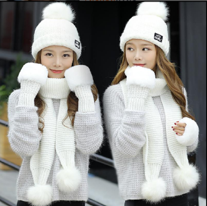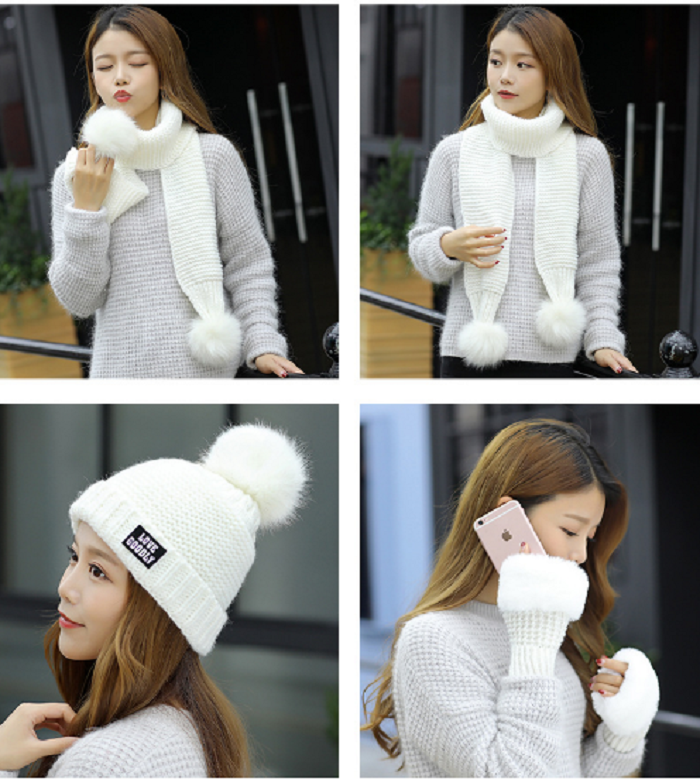 Bộ mũ len nữ kèm khăn và găng tay phong cách Hàn cao cấp