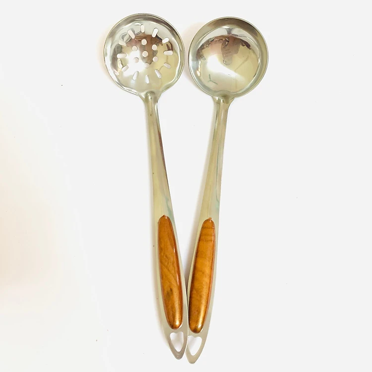 Bộ muôi canh muôi thủng inox cán ốp nâu 7x25cm
