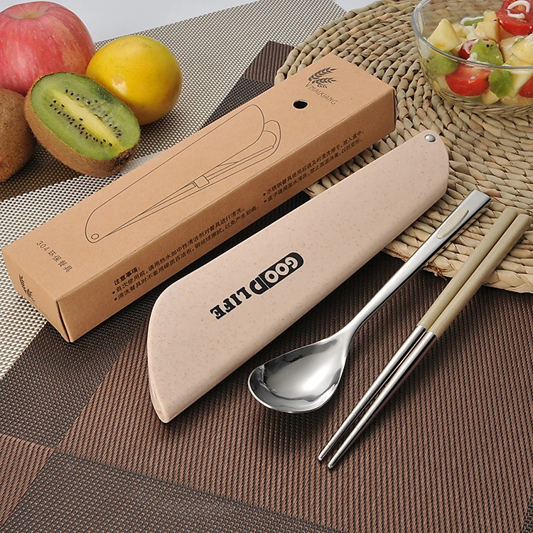 Bộ Muỗng Đũa Cơm Trưa Inox 304 Chất Lượng Cao - Hộp Nhựa Lúa Mì Thân Thiện Môi Trường