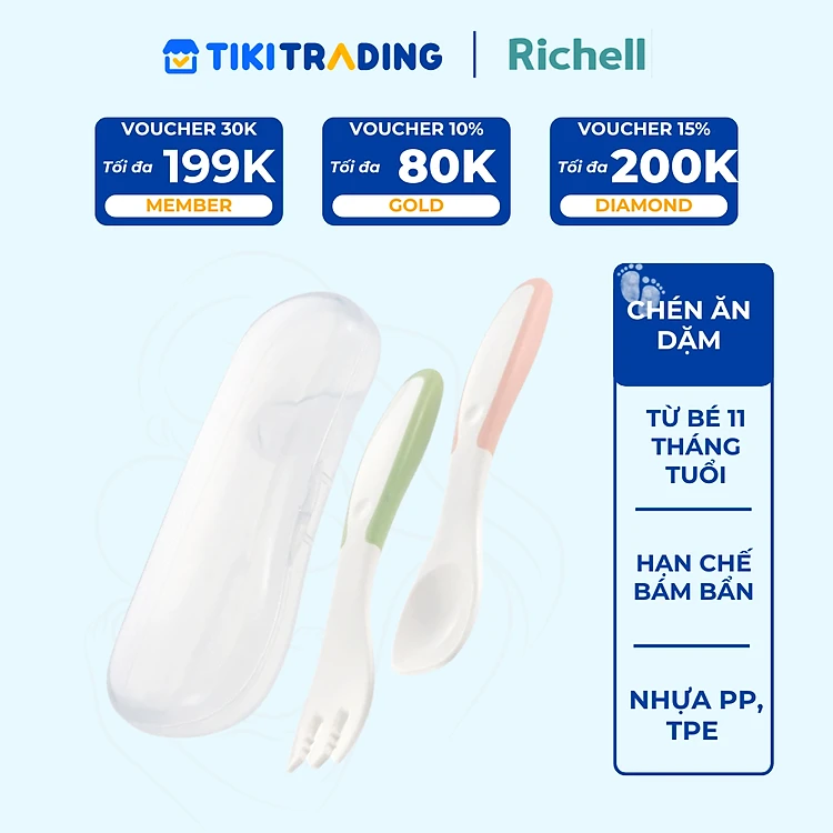 Bộ muỗng nĩa cong RICHELL Nhật TLI bước 2 cho bé tập xúc ăn | Baby (Kèm hộp)