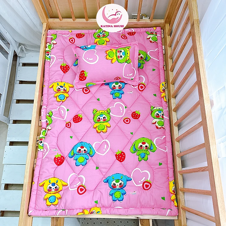 Bộ nệm gối cho bé mầm non Katina House, vải cotton TL mềm mát, họa tiết hoạt hình gẫn gũi