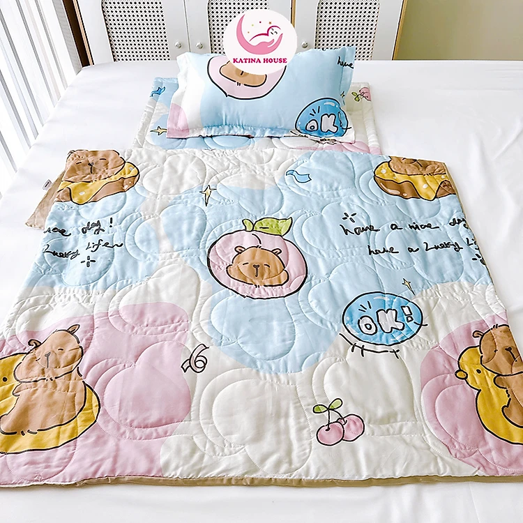 Bộ nệm gối chăn Katina House cho bé, vải Tencel 60s gòn lông vũ êm ái, bóng mượt mát lạnh