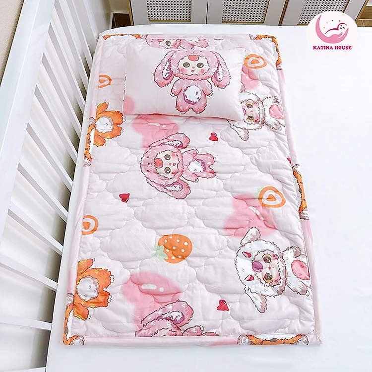 Bộ nệm gối cho bé đi học mẫu giáo Katina House, vải cotton satin hàn quốc đẹp, mềm mát