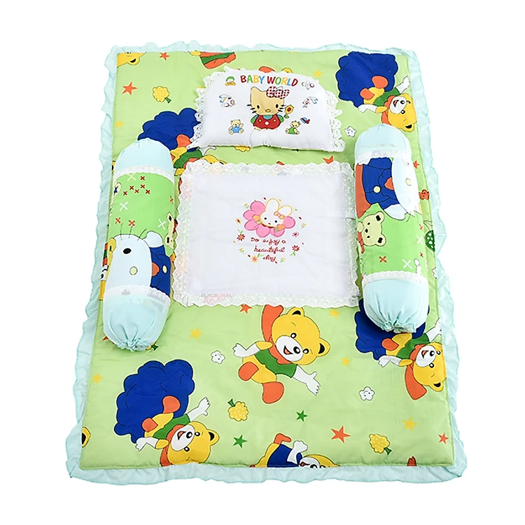- Kích thước sản phẩm:+ Mền: 110x80 cm+ Gối chặn: 48x13 cm+ Gối kê đầu: 36x24 cm