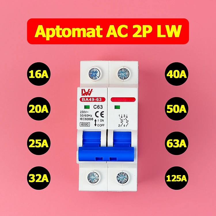 Bộ ngắt mạch tự động LW 220V MCB AC 2P ngắt mạch Bảo vệ quá tải ngắn mạch Dùng cho điện dân dụng
