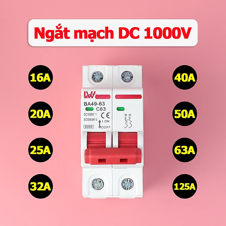 Bộ ngắt mạch tự động LW MCB DC 2P 1000V Cầu Dao Chuyên Dụng Cho Điện Năng Lượng Mặt Trời