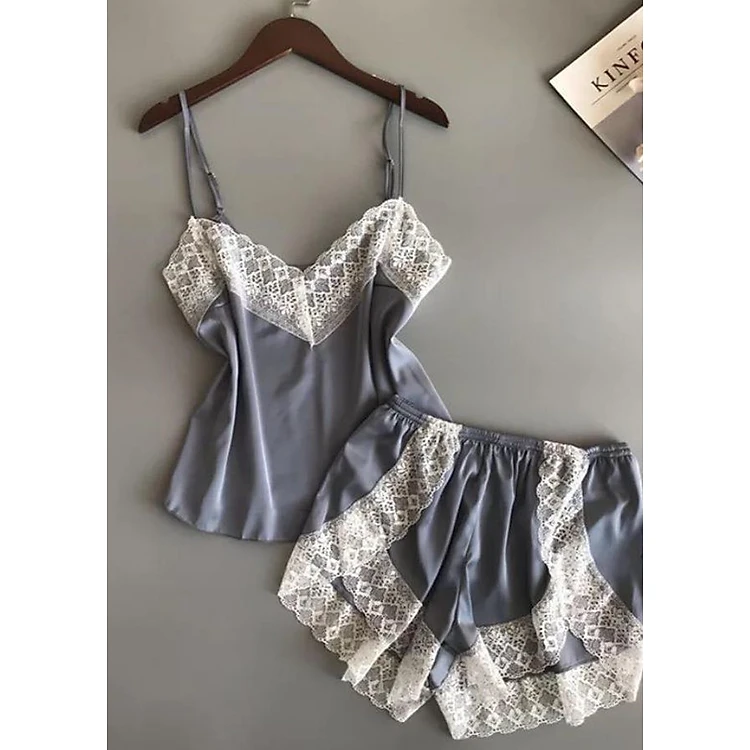 Bộ ngủ lụa 2 dây viền ren ngực - BN020