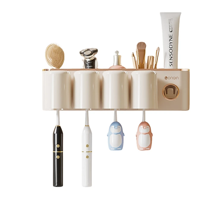 Bộ Nhả Kem Đánh Răng Tự Động Giá Để Bàn Chải Đánh Răng Có Kèm Cốc Và Bộ Nhả Kem Không Cần Khoan Đục