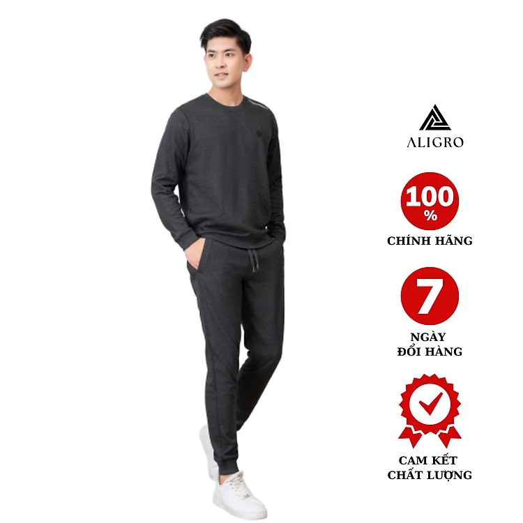 Bộ nỉ ALIGRO cổ tròn màu ghi đậm BN.13