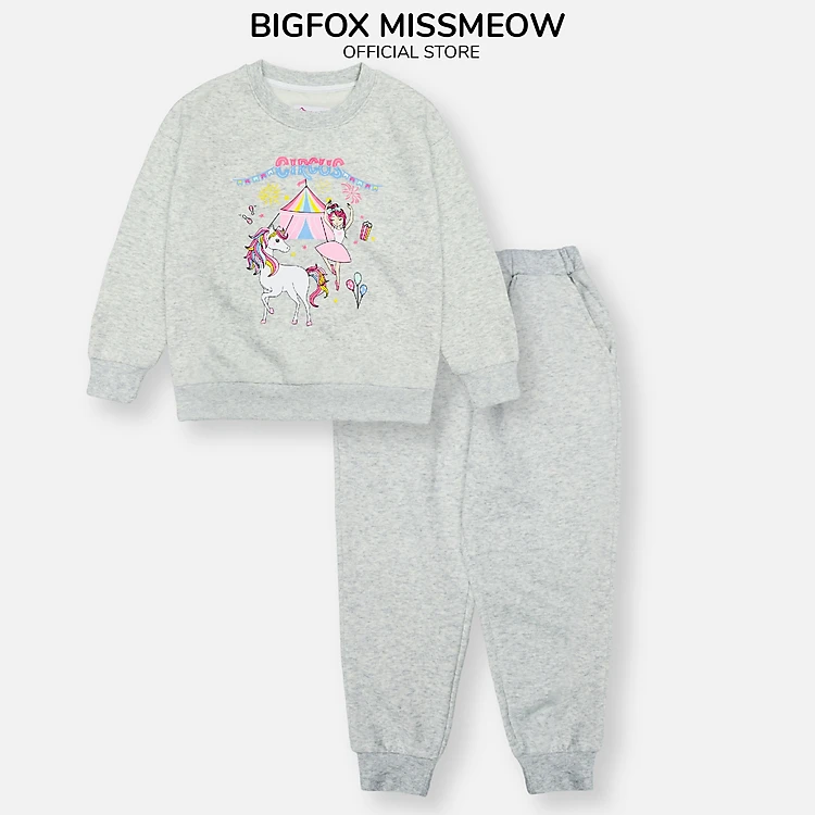 Bộ nỉ bông bé gái Bigfox Miss Meow size đại, bộ thu đông cho bé gái in Bale Circus size trẻ em 3,4,5…11 tuổi